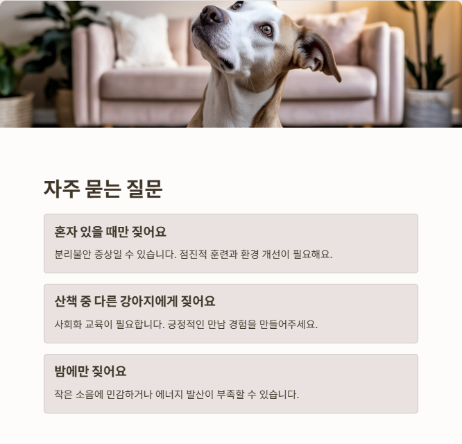 이러한 짖음의 원인을 정확히 파악하는 것이 적절한 대처의 첫걸음입니다
