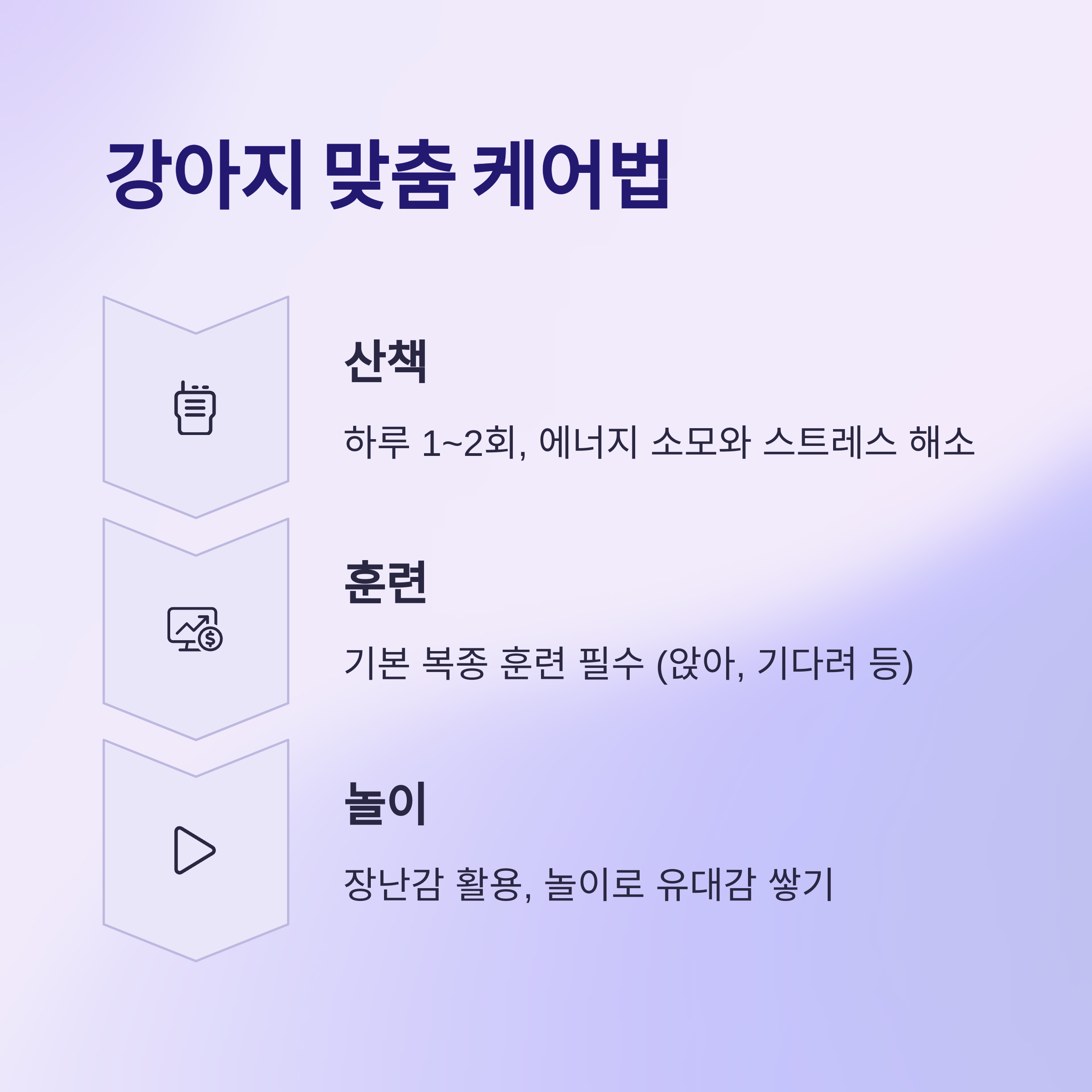 | 산책 | 하루 1~2회, 에너지 소모 + 스트레스 해소 |