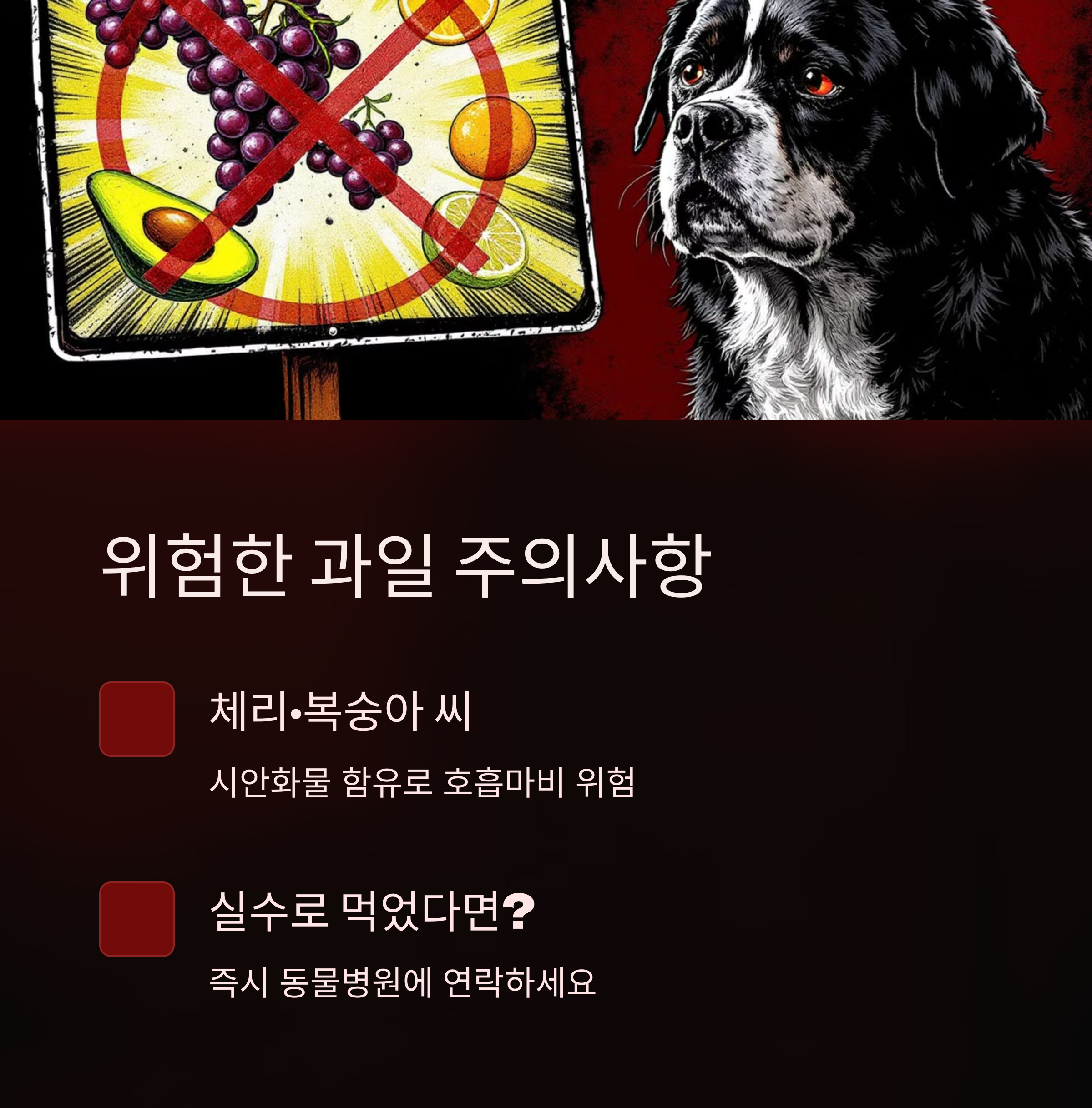 | 과일 종류 | 위험 성분 | 증상 |