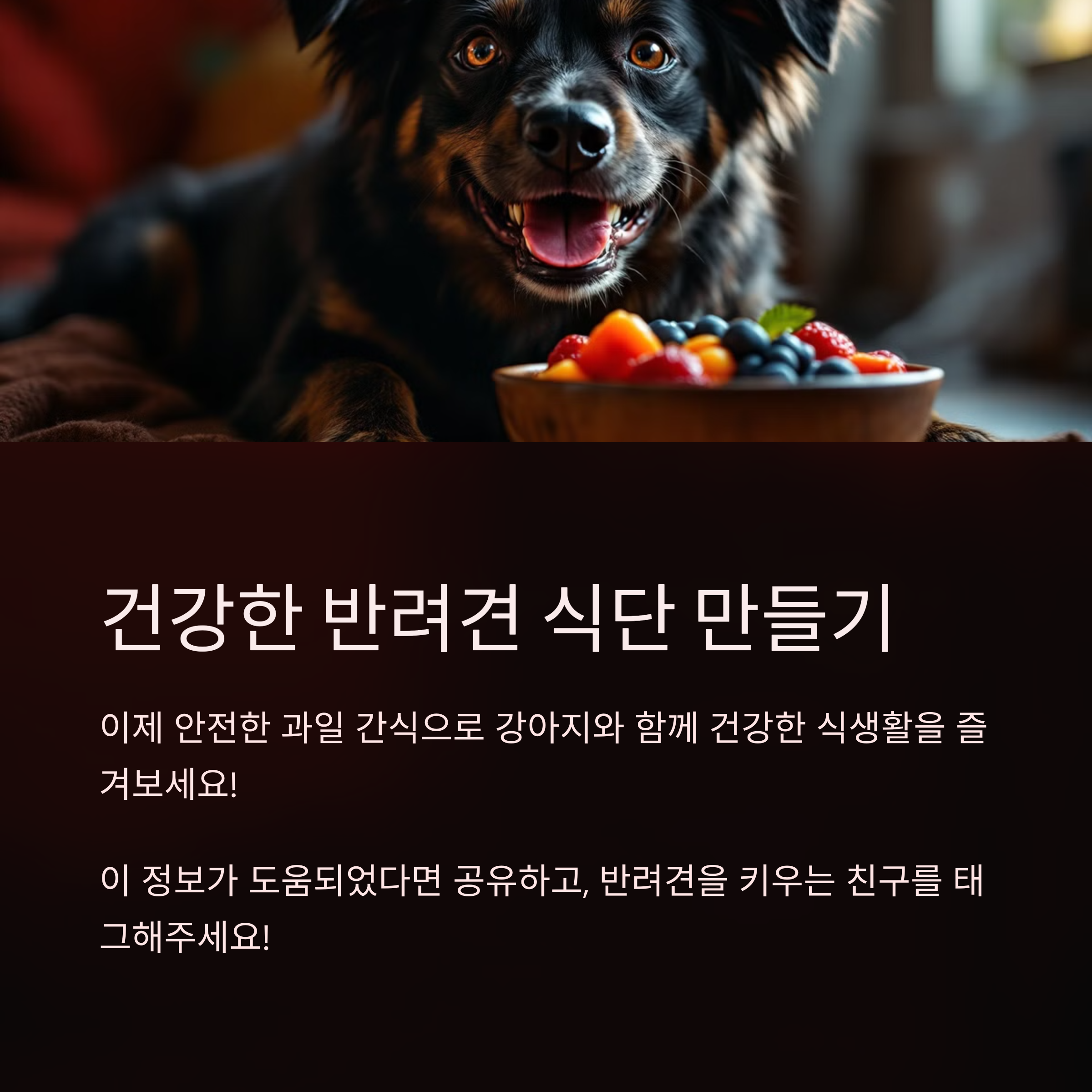 이제 안전한 과일 간식으로 강아지와 함께 건강한 식생활을 즐겨보세요! 과일은 언제나 주식 사료 대체가 아닌 일일 열량의 10% 이내로만 주어야 한다는 점, 꼭 기억하세요