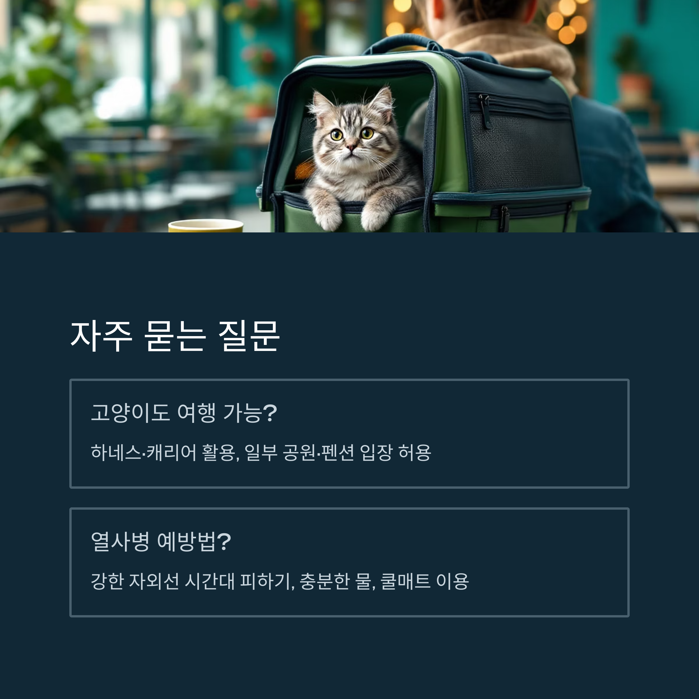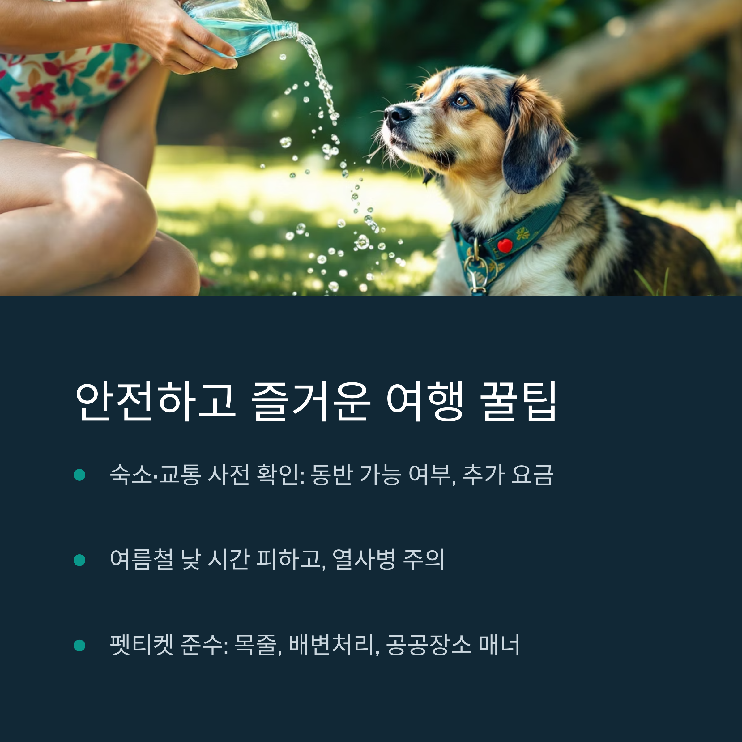- 여행 팁: 숙소·교통 사전 확인, 날씨·건강 체크, 펫티켓 준수