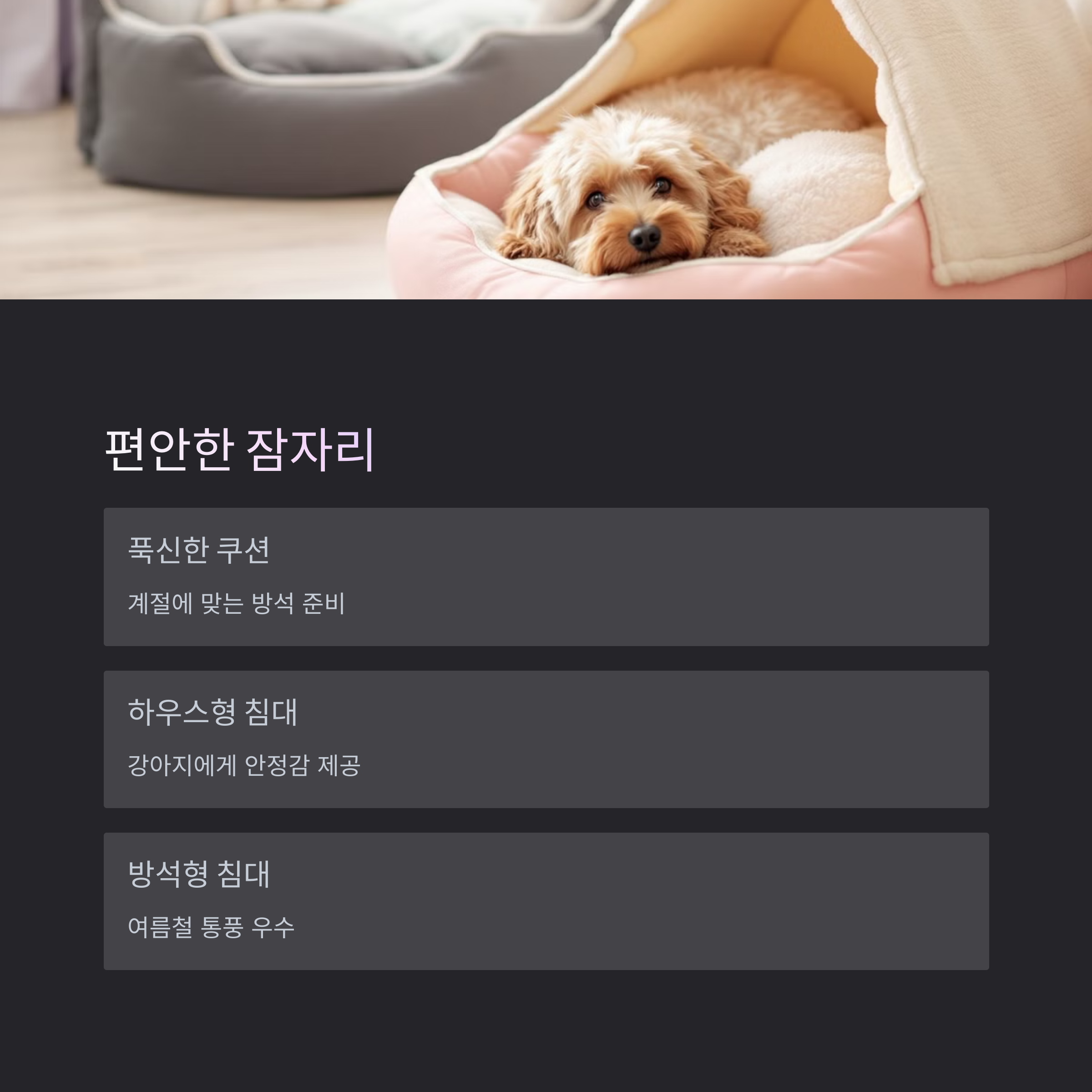 | 펫베드 | 계절에 따라 쿠션감 조절 | 사계절 |