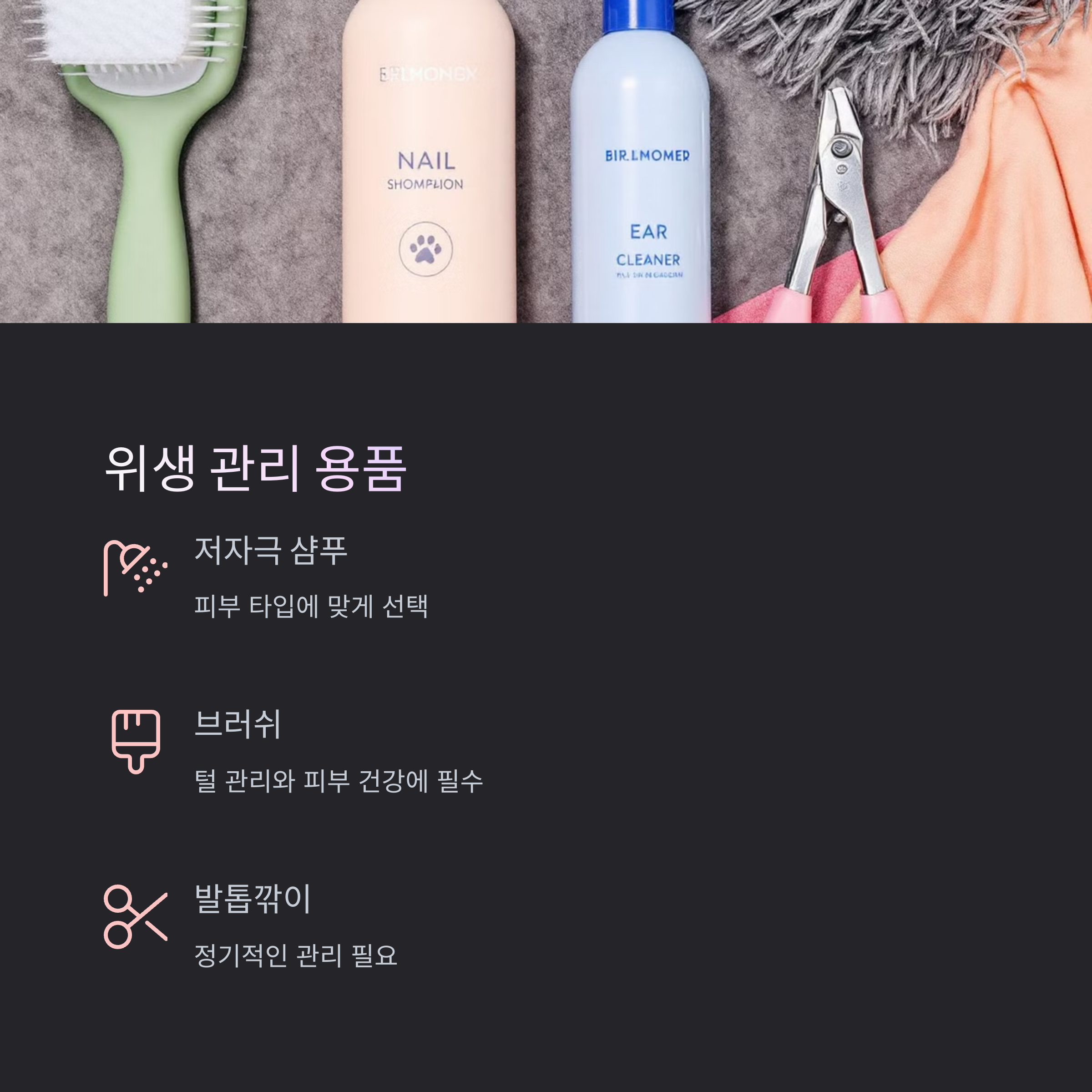 반려동물의 위생 관리도 정말 중요해요. 특히 실내에서 함께 지낼 땐 냄새나 털날림 문제가 생기기 쉬운데요, 기본적인 샴푸, 브러쉬, 귀 세정제, 발톱깎이 등은 꼭 구비해두는 걸 추천합니다. 피부 타입에 따라 샴푸 종류도 달라지니, 처음엔 저자극 제품부터 사용해보세요.