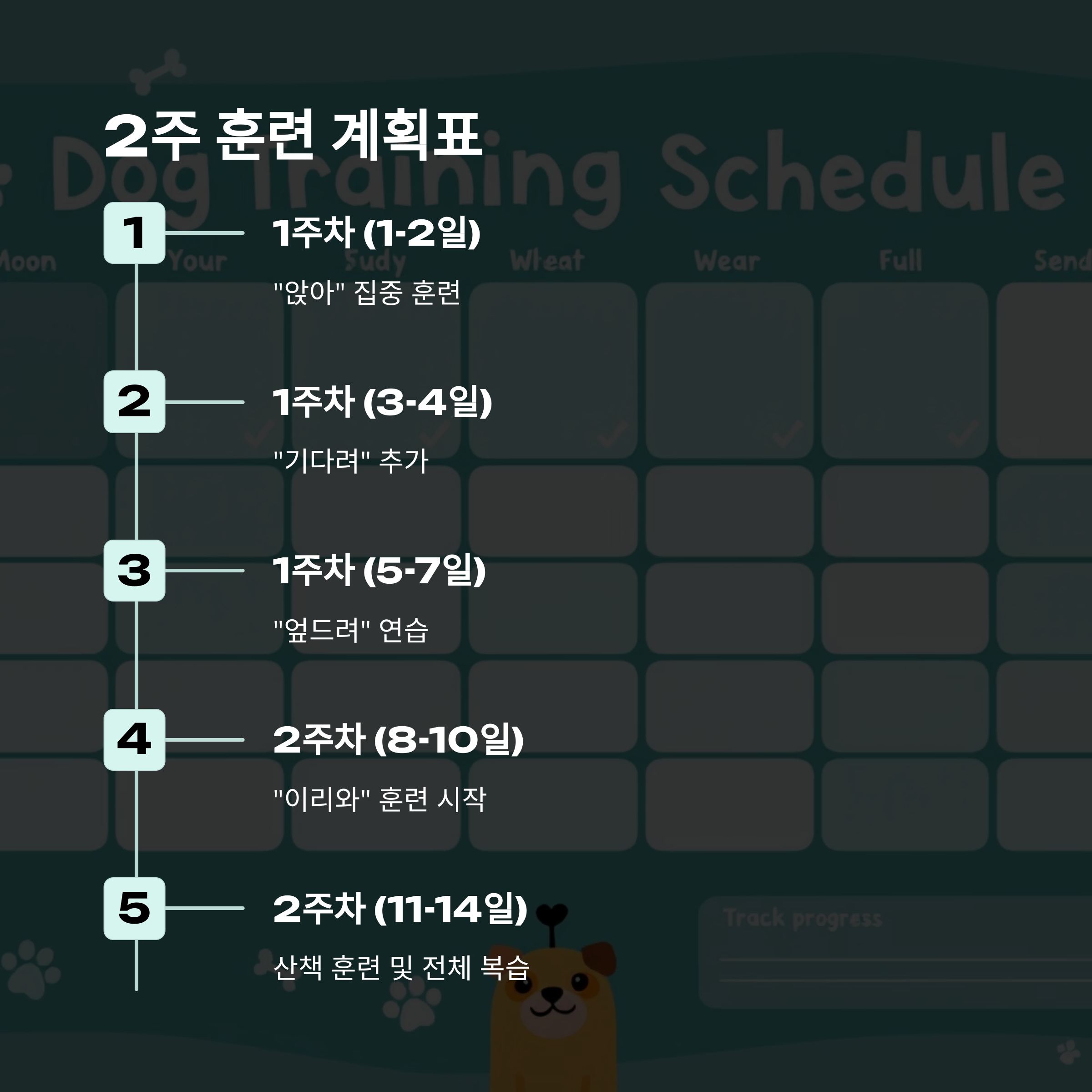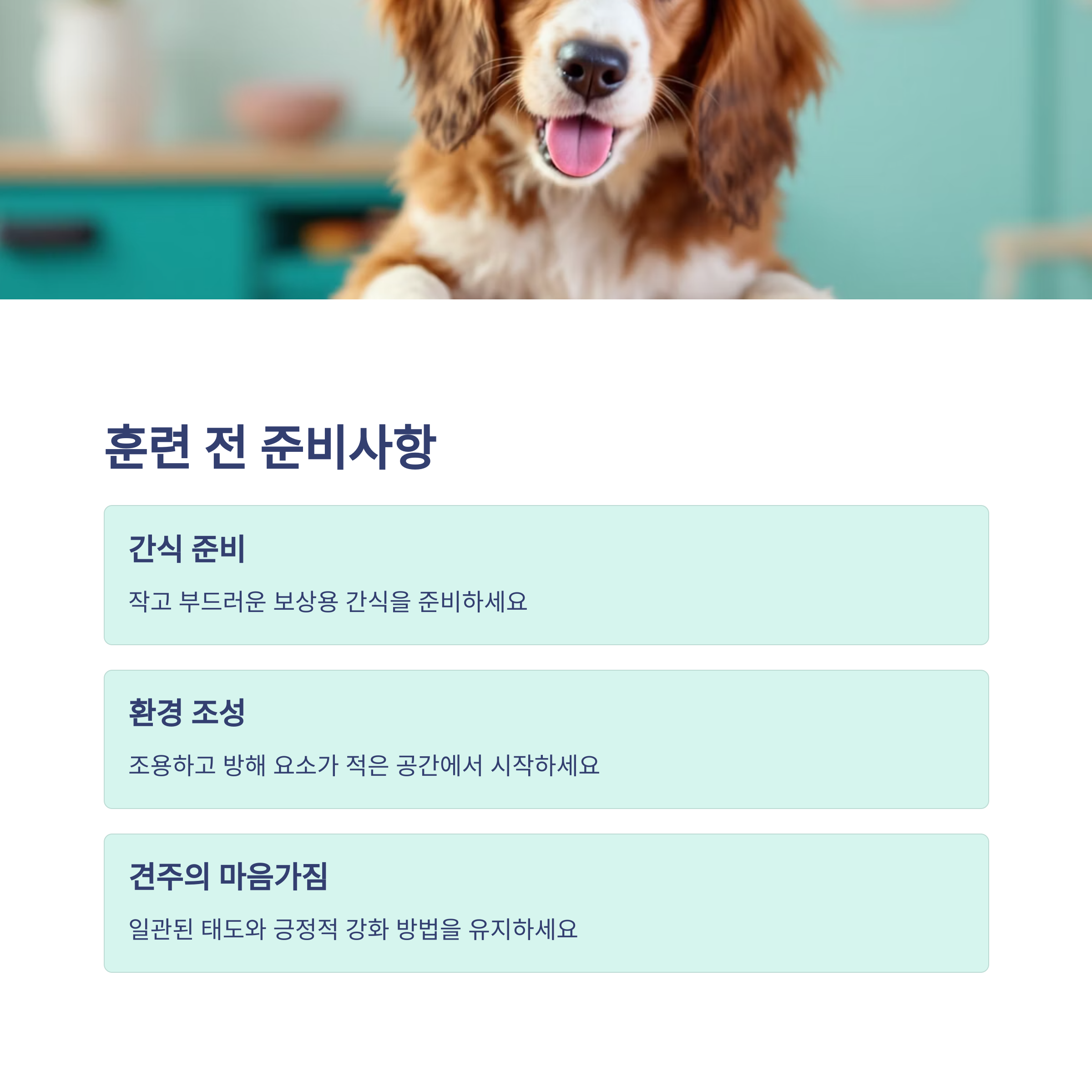 - 훈련 시간이 너무 길어요: 한 번에 10~15분 정도로 짧게 여러 번 진행하세요.