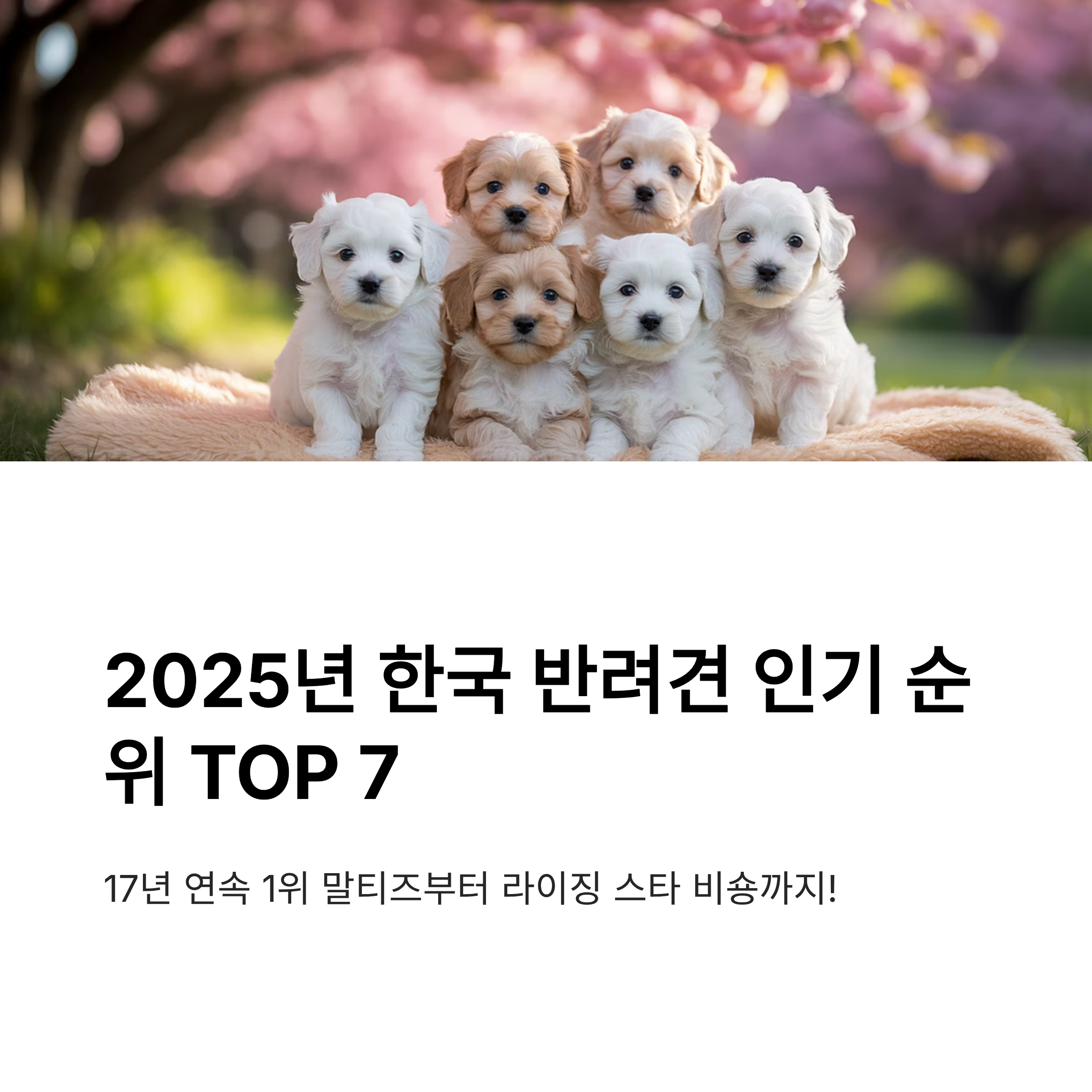 2025년 한국 반려견 인기 순위 TOP 7: 17년 연속 1위 말티즈부터 라이징 스타 비숑까지 완벽 정리!